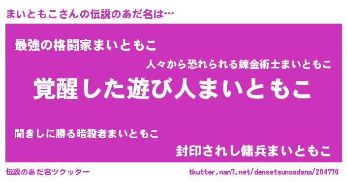 | 女子向けラノベタイトル風あだ名 | 『まいともこの玉の輿計画!』 |
