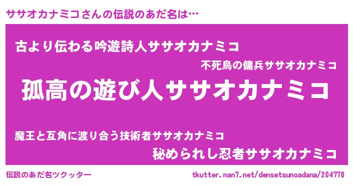 | ヒーロー風カッコイイあだ名 | 『暗黒騎士ササ』『ネオササオカナミコ』 |