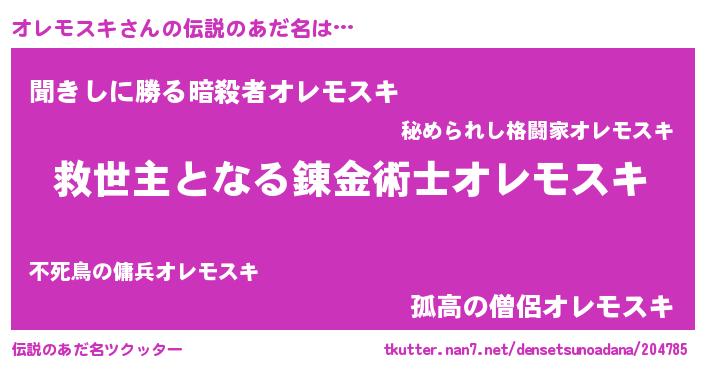 | ヒーロー風カッコイイあだ名 | 『慈愛の使者オレモスキ』『黄金騎士オレ』 |