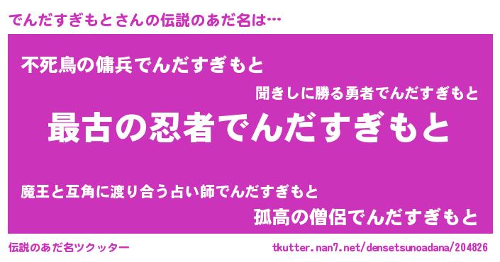 | 男性向けラノベタイトル風あだ名 | 『やはりでんだすぎもとの青春ラブコメはまちがっている 』 |