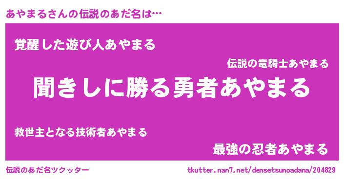 | ヒーロー風カッコイイあだ名 | 『ネオアヤマル』『究極戦士アヤマル』 |