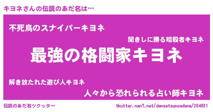 | 意味不明あだ名 | 『住所不定無職キヨネ(8歳)』 |