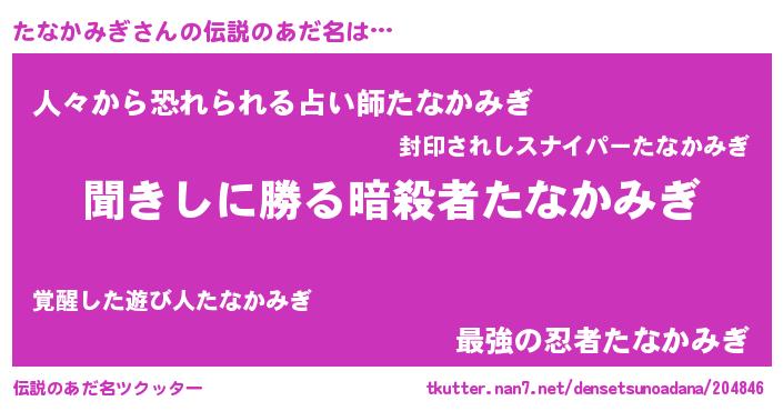 | 意味不明あだ名 | 『永久保存たなかみぎ』 |