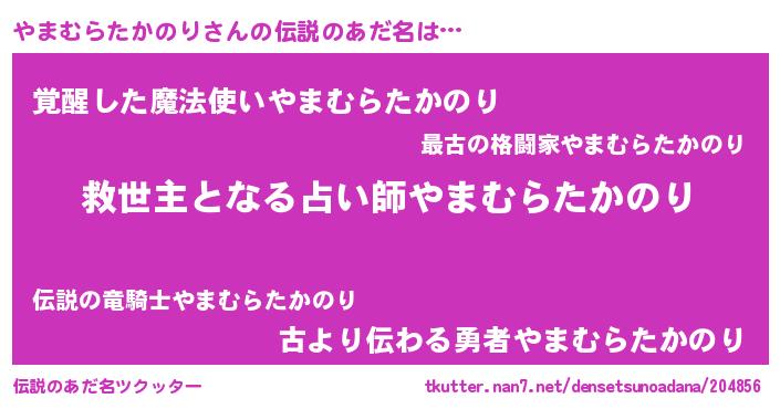 | 女子向けラノベタイトル風あだ名 | 『闇のやまむらたかのり』 |