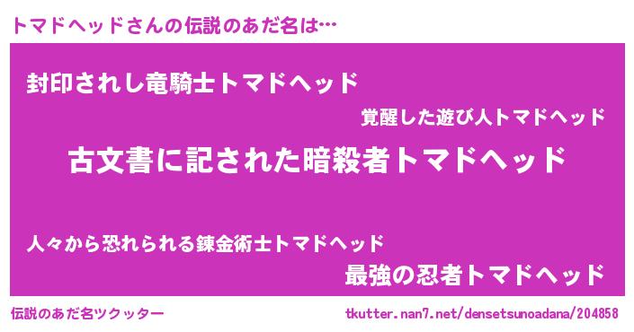 | ヒーロー風カッコイイあだ名 | 『ネオトマドヘッド』『天弓騎士トマ』 |