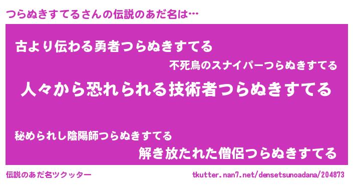 | 意味不明あだ名 | 『自称つらぬきすてる』 |