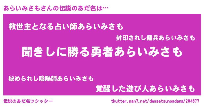 | 意味不明あだ名 | 『自称あらいみさも』 |