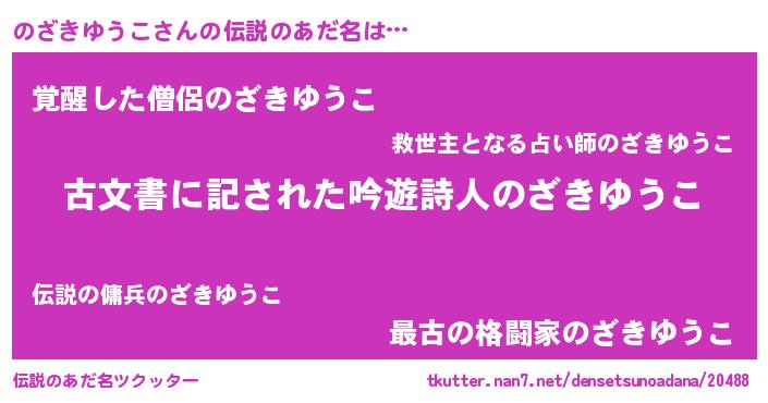 | 意味不明あだ名 | 『住所不定無職のざきゆうこ(3歳)』 |