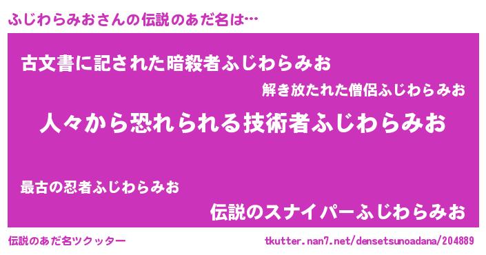 | ヘコむあだ名 | 『ふじわらみお(笑)』『ふじにゅー』 |