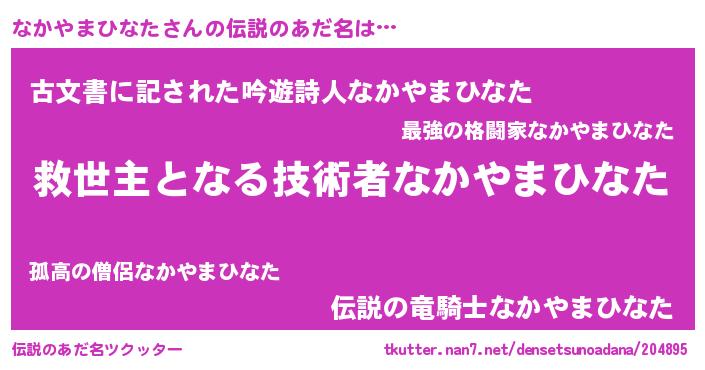 | 男性向けラノベタイトル風あだ名 | 『ノーゲーム・ノーナカヤマヒナタ』 |
