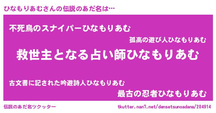 | ヒーロー風カッコイイあだ名 | 『天空の使者ひなもりあむ』 |