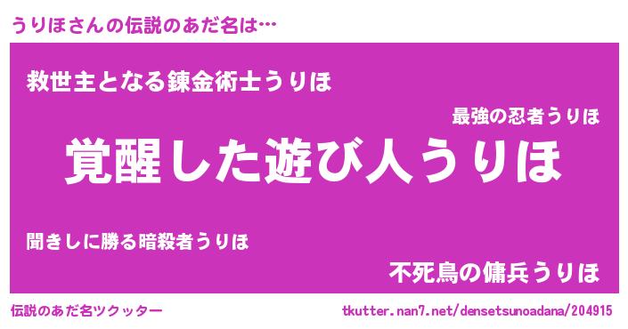 | 女子向けラノベタイトル風あだ名 | 『うりほ様がみてる』『死神うりほの再婚』 |