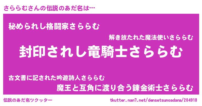 | ヒーロー風カッコイイあだ名 | 『スーパーサララム』『銀牙騎士サラ』 |