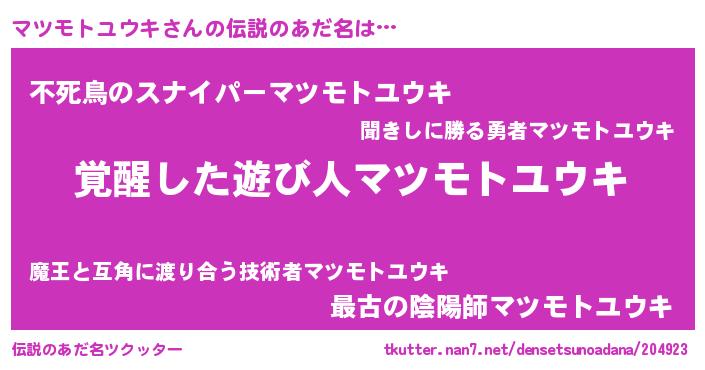 | 意味不明あだ名 | 『とにかく怪しいマツモトユウキ』 |