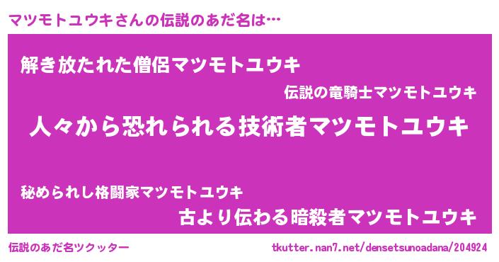 | ヒーロー風カッコイイあだ名 | 『正義の使者マツモトユウキ』 |