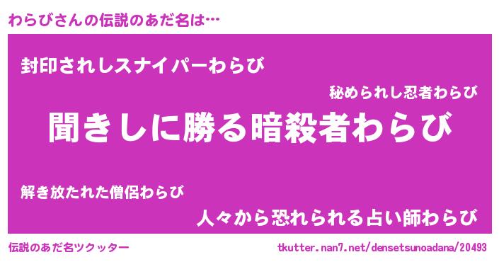 | 胡散臭い通販商品みたいなあだ名 | 『絶対に幸福をもたらす健康食品…その名も「わらび」』 |