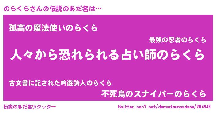 | 意味不明あだ名 | 『住所不定無職のらくら(53歳)』 |