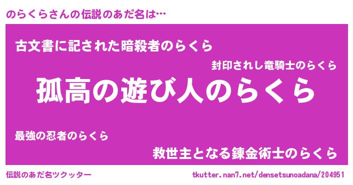 | 女子向けラノベタイトル風あだ名 | 『のらくらが死なない童話 林檎ののらくらの診療簿』 |