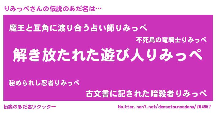 | 意味不明あだ名 | 『住所不定無職りみっぺ(86歳)』 |