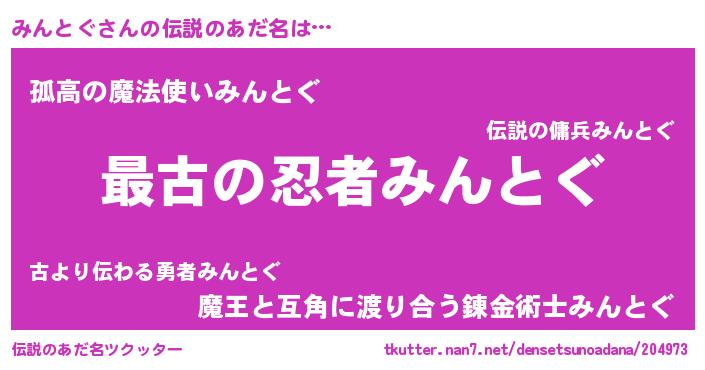 | ヒーロー風カッコイイあだ名 | 『ウルトラみんとぐマン』『魔戒騎士ミン』 |