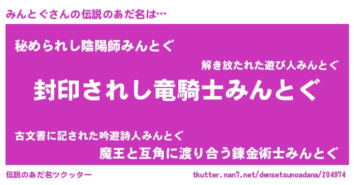 | 意味不明あだ名 | 『ペロリンみんとぐ』『自称みんとぐ』 |