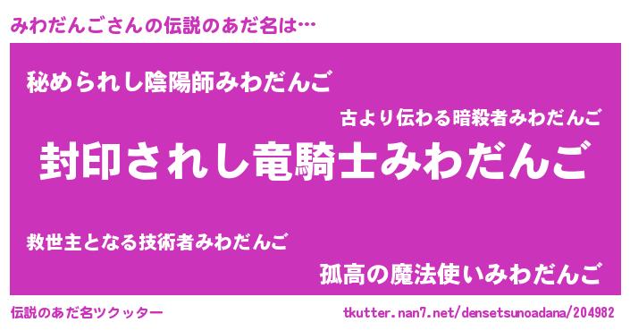 | 男性向けラノベタイトル風あだ名 | 『みわだんごに滅ぼされるだけの簡単なお仕事です』 |