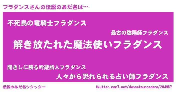 | ポケモン風あだ名 | 『フラキング』『ヒフラダンス』 |