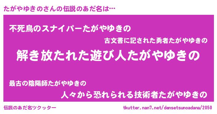 ヒーロー風カッコイイあだ名 | 『幻影騎士タガ』『スーパータガヤユキノ』 |