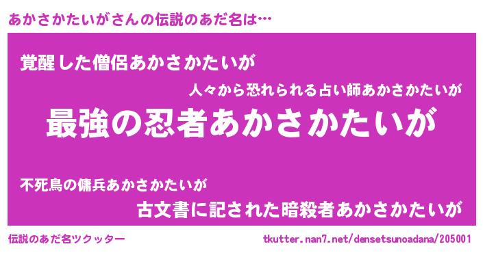 | 意味不明あだ名 | 『あかさかたいがフォーエバー』 |