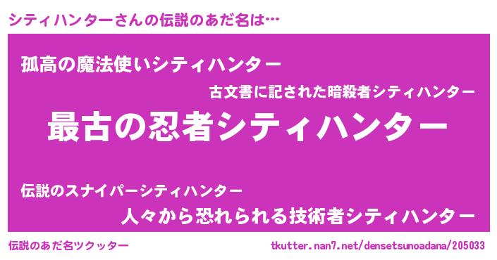 | ファンタジー風あだ名 | 『エターナルシティハンターー』 |