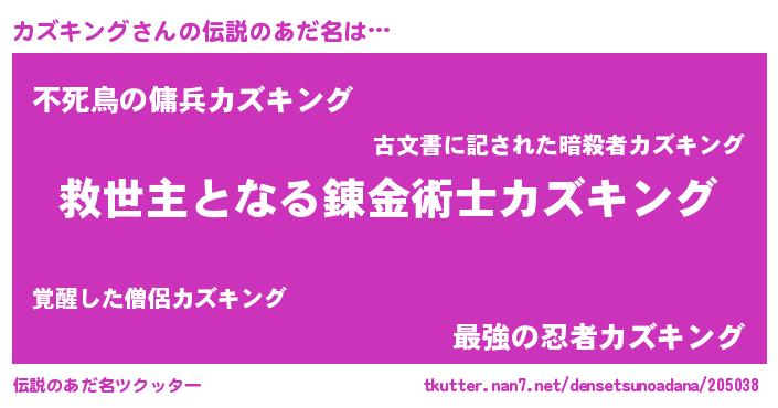 | ヒーロー風カッコイイあだ名 | 『天空の使者カズキング』『仮面カズダー』 |