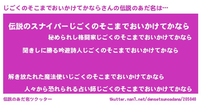 | 欧米人風あだ名 | 『ダレノガレじごくのそこまでおいかけてかなら』 |