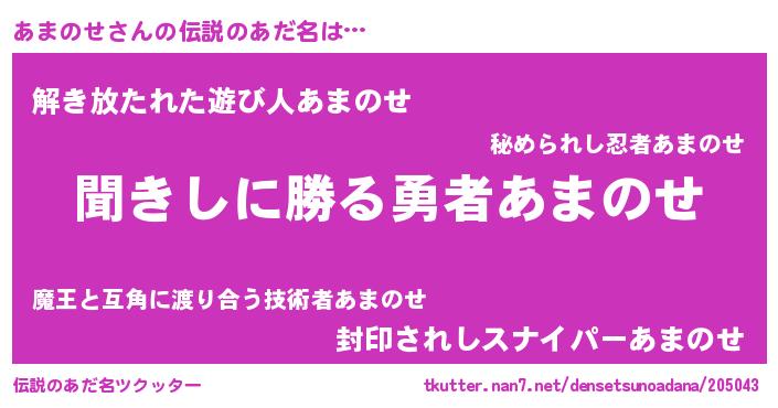 | 意味不明あだ名 | 『永久保存あまのせ』『自称あまのせ』 |