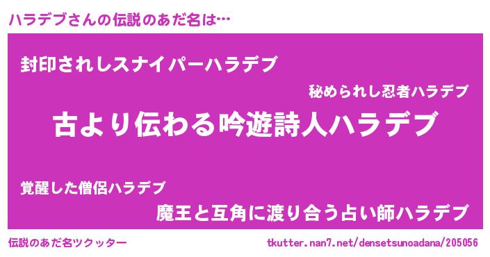 | 意味不明あだ名 | 『住所不定無職ハラデブ(6歳)』 |