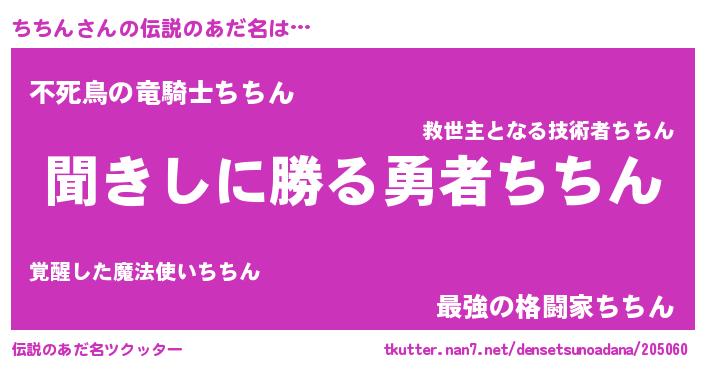 | 意味不明あだ名 | 『住所不定無職ちちん(81歳)』『自称ちちん』 |