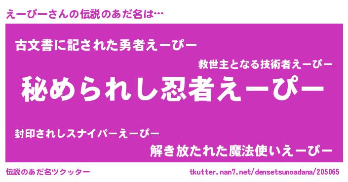 | ヒーロー風カッコイイあだ名 | 『ウルトラえーぴーマン』『ネオエーピー』 |