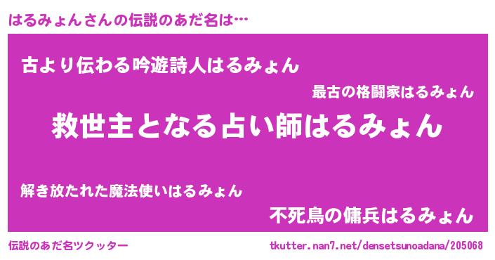 | 意味不明あだ名 | 『つくし科はるみょん属』 |
