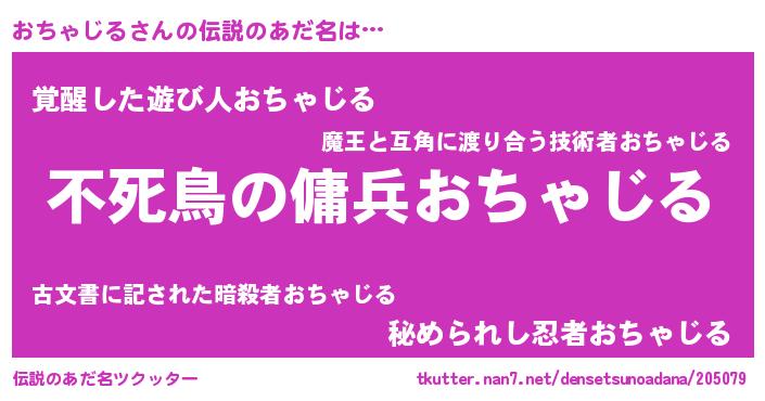 | 意味不明あだ名 | 『住所不定無職おちゃじる(65歳)』 |