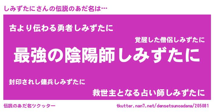 | 意味不明あだ名 | 『しみずたにフォーエバー』 |