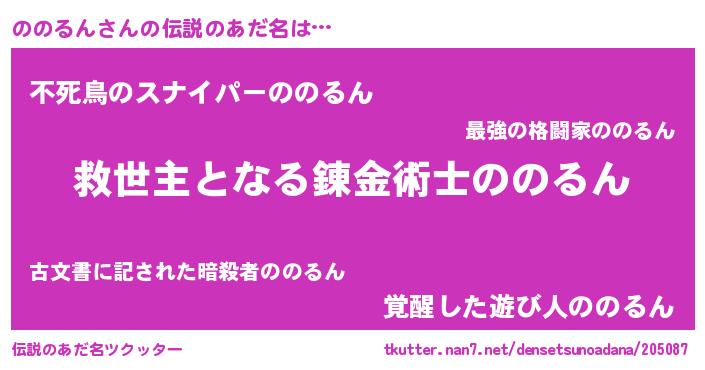 | 意味不明あだ名 | 『ヨモギ科ののるん属』『自称ののるん』 |