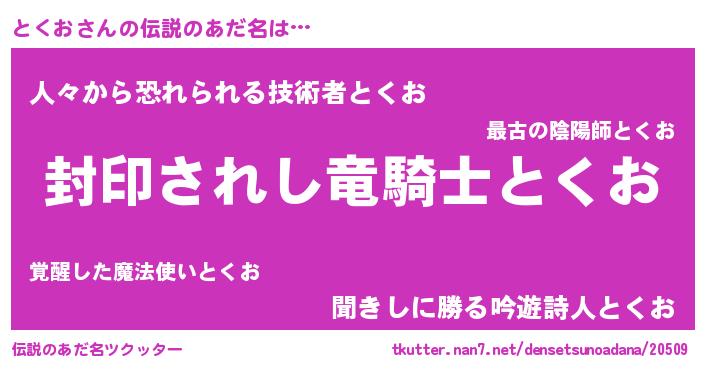| ヒーロー風カッコイイあだ名 | 『スーパートクオ』『天空の使者とくお』 |