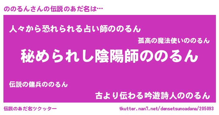 | 男性向けラノベタイトル風あだ名 | 『ノノルンスレイヤー』『緋弾のノノルン』 |