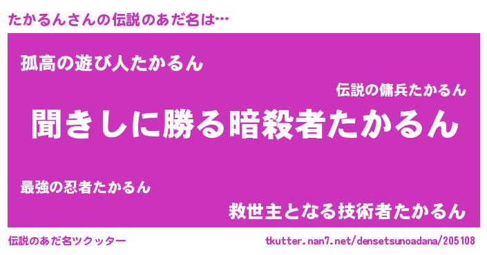 | 男性向けラノベタイトル風あだ名 | 『たかるんという概念が存在しない退屈な世界 』 |