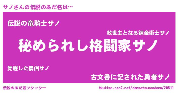 | ヒーロー風カッコイイあだ名 | 『仮面サノダー』『ウルトラサノマン』 |