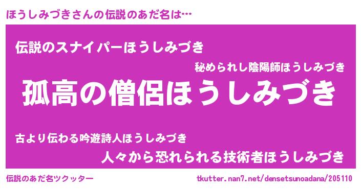 | 意味不明あだ名 | 『住所不定無職ほうしみづき(43歳)』 |