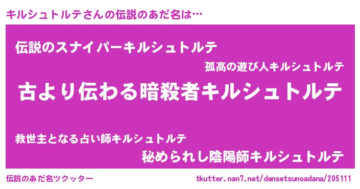 | ヒーロー風カッコイイあだ名 | 『サイバー戦士キルシュトルテ』 |