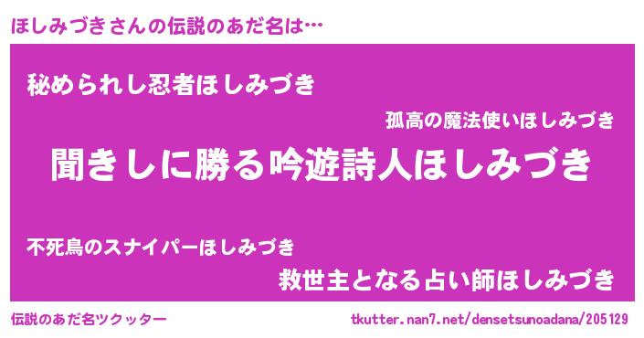 | ヘコむあだ名 | 『ほしみづき(笑)』『つくし』 |