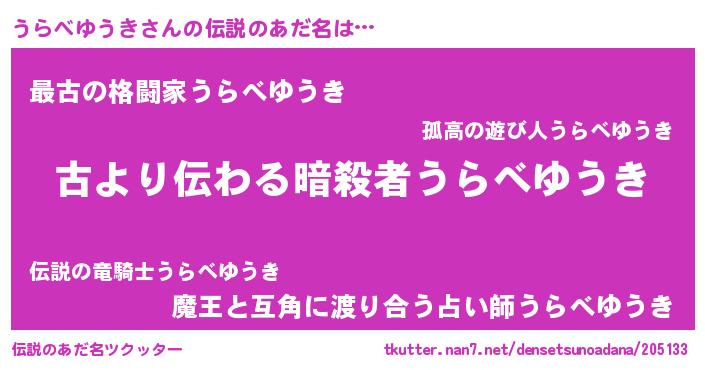 | 意味不明あだ名 | 『永久保存うらべゆうき』 |