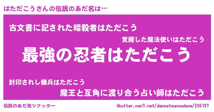 | 欧米人風あだ名 | 『アンジェラ・はただこう』 |