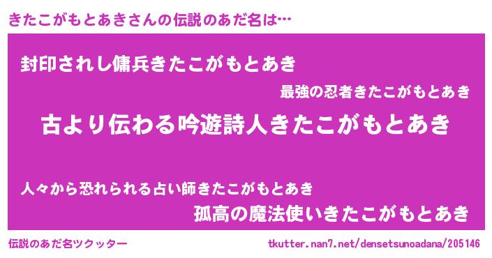 | ヘコむあだ名 | 『きたこがもとあき(笑)』『きたにゅー』 |